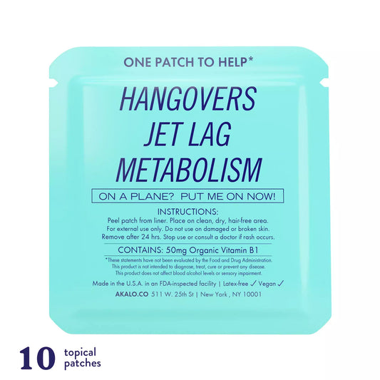 AKALO Hangover Patches contain thiamine, also known as vitamin B1. The B1 in our patches is an essential component in the metabolization of carbohydrates. As soon as alcohol enters your body, itโs treated as a carbohydrate. To effectively process it, your body requires B1. In scientific terms, B1 is an important cofactor enzyme in the production of glutathione which is critical to the neutralization of toxins that come from breaking down alcohol. Given the bodyโs sensitive stores of B1 and glutathione (meaning quickly used up after a few drinks), and how integral they are in the disposal of the toxins that can cause the symptoms associated with the day after drinking, we must constantly replenish our body with these nutrients. Ongoing replenishment of B1 helps us process each subsequent drink.